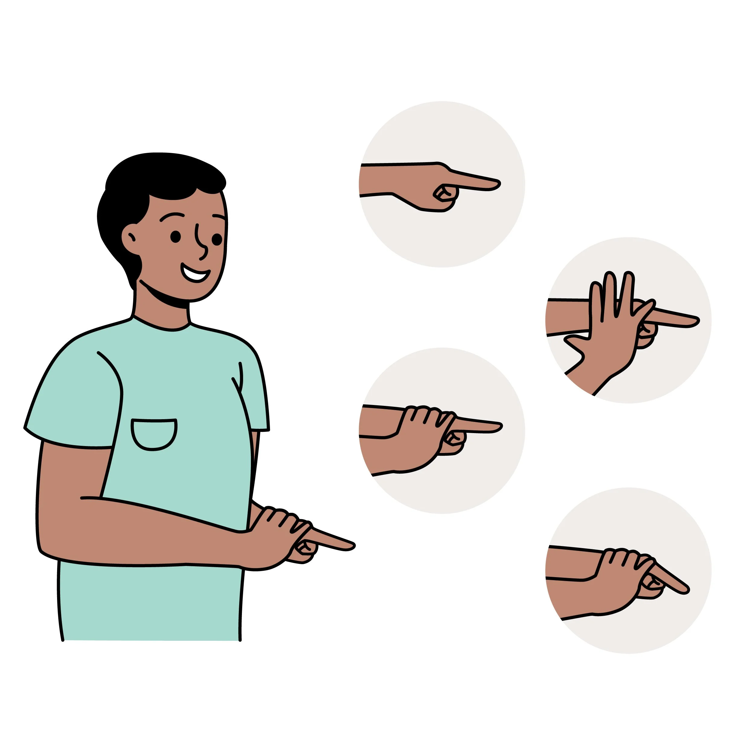 If you are right-handed, make a loose fist with your left hand and extend your left forefinger. This becomes the resistance finger.
